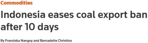 印尼放宽煤炭出口禁令,14艘煤船已被允许离港