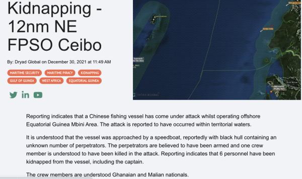 突发!几内亚湾一中国船只遇袭:6人被绑,1人身亡