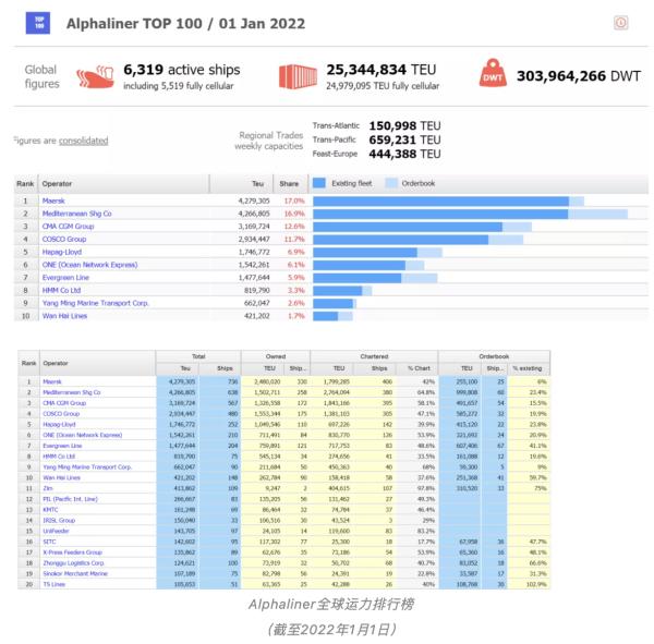 2022年首个运力榜出炉,MSC与马士基榜首之争进入白热化
