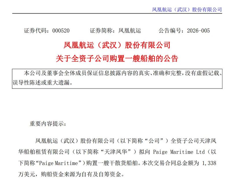 1338万美元!凤凰航运购入一艘巴拿马型散货船