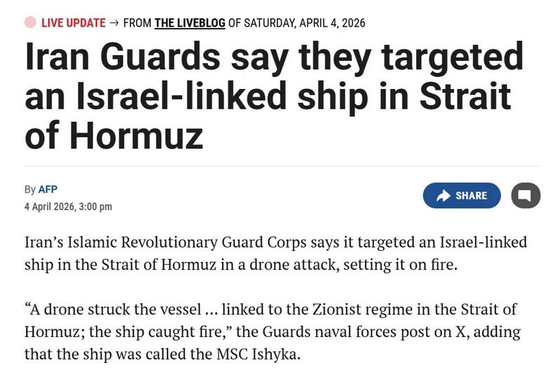 伊朗:MSC一艘集装箱因“涉以色列”遭打击起火