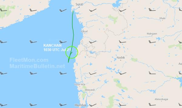 短讯:无法正常航行的杂货船“KANCHAN"号在阿拉伯海印度海岸附近漂流