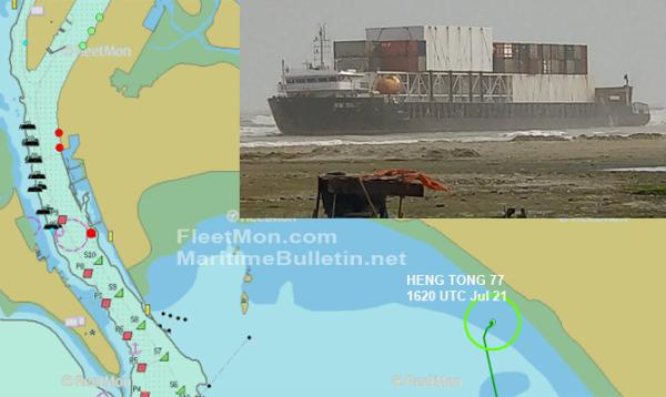 短讯:"HENG TONG 77"号甲板货船在海滩上漂流搁浅