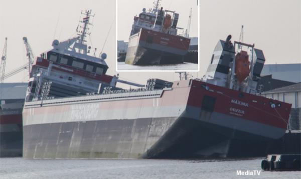 短讯:停泊在鹿特丹的荷兰籍杂货船右舷发生严重倾斜
