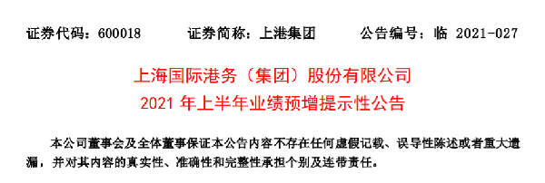 上港集团上半年预计净赚85.42亿元 同比增长122.5%