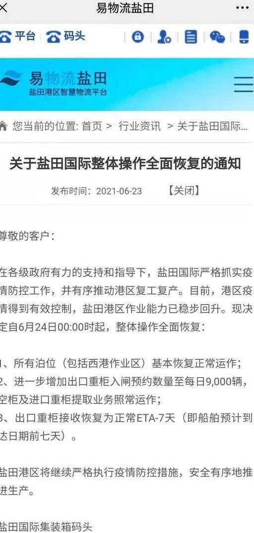 运营商的快速反应成功遏制盐田港拥堵造成更大范围的影响