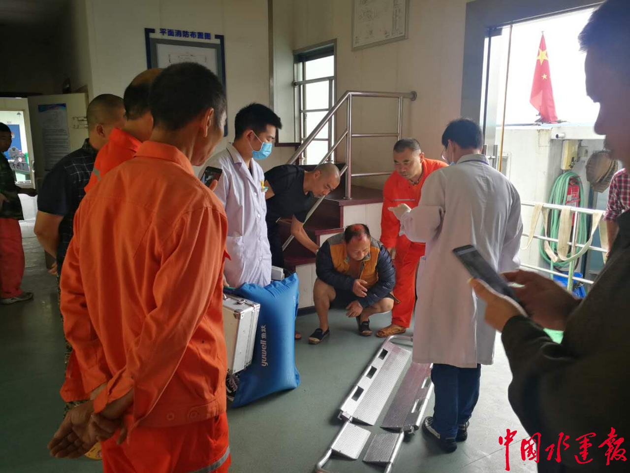 上午8时左右,长江涪陵航道处航道测量中心人员正驾驶“航迅312”艇,前往洛碛水域开展表面流速流向测量工作,途中接到甚高频救人紧急呼救,经了解在肖家石盘附近有人落水遇险,情况十分危急。险情就是命令,该处测量中心人员迅速调转船向下行至事发水域,发现有4人落水被困,并顺江而下漂浮,随时都有生命危险。危急时刻,该处人员第一时间展开施救,现场通过抛救生绳、救生圈,多人协力,成功将4名落水人员一一救起。其中1名被救人员因头部受伤,意识模糊,该处施救人员现场立即拨打了120急救,并驾船送落水人员赶往长寿航道维护基地等待救治。