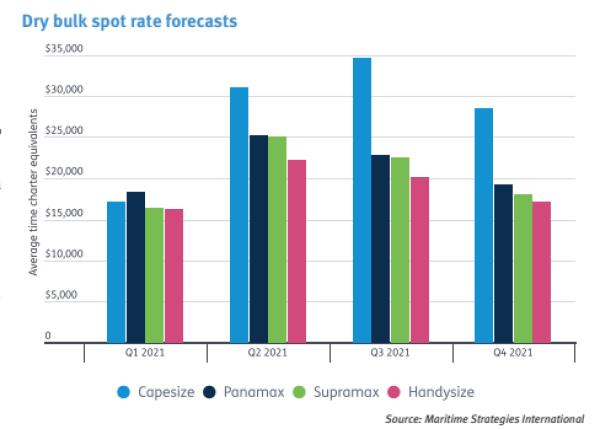 该公司的创始人马克-威廉姆斯说:"在供应方面是良性的——明年年中之前几乎没有新造船交付的余地。而从需求的角度来看,基于制造业和基础设施带动的经济刺激,全球GDP增长5.5%,加上美元疲软,应该会提振运费,且这种强劲势头将在2022年甚至2023年持续下去,这是自2003-2008年的市场行情最好的时刻。"