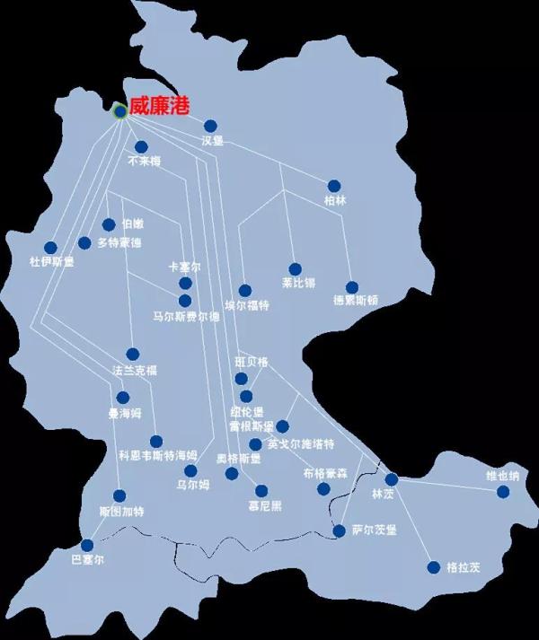 威廉港是德国唯一的深水港,地理位置上邻近汉堡和不来梅哈芬,是德国第三大集装箱海港。威廉港集装箱码头于2012年由德国最大的码头运营商EUROGATE集团投入运营,设计年吞吐能力为270万标箱,岸前水深达到18米。在欧洲传统大港纷纷拥堵的同时,威廉港是唯一一个还可以灵活安排大船挂靠和拥有充足堆存空间的深水码头。