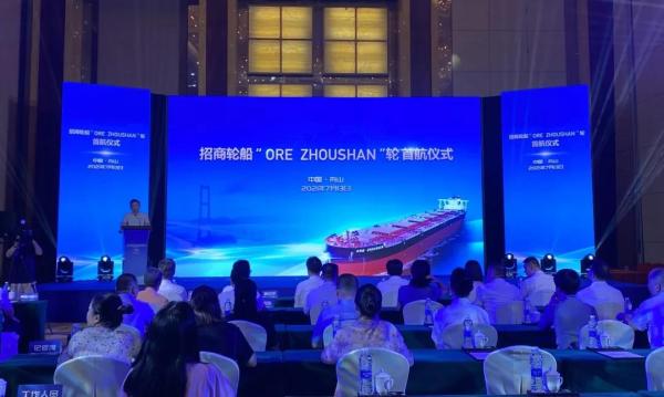 7月13日,为庆祝首航圆满成功,ORE ZHOUSHAN轮首航仪式在舟山隆重举行,舟山市政府副市长、浙江自贸试验区舟山管委会副主任毛江平、招商轮船董事长、招商局集团航筹办主任谢春林、巴西淡水河谷中国区总裁谢雪女士、招商轮船副总经理、招商局集团航筹办副主任徐挺惠、舟山市港航和口岸管理局局长蒋海平等领导参加仪式。