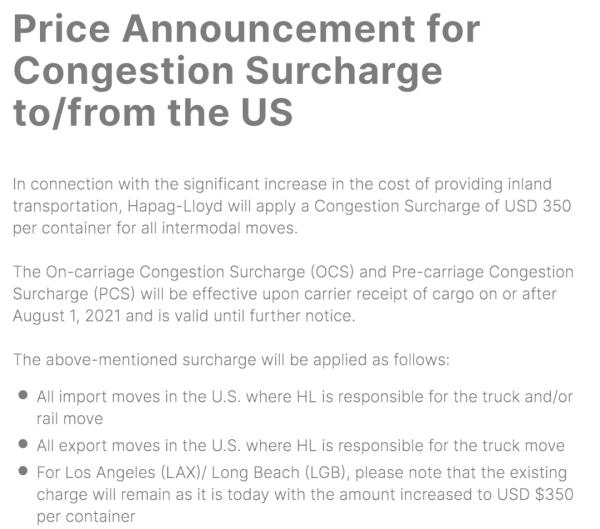 赫伯罗特称,上述附加费范围为在美国的所有进口运输中,由赫伯罗特负责的卡车和铁路运输,以及在美国的所有出口运输中,由赫伯罗特负责的卡车运输。