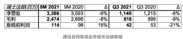 此外,在合同物流方面,2021年第三季度,德迅实现净营收11.4亿瑞士法郎(约合12.41亿美元)。