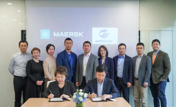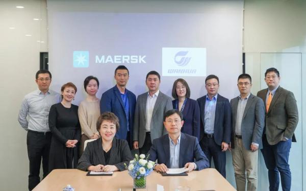 2021年10月20日,万华化学集团股份有限公司与马士基集团战略合作高层会议暨战略合作签约仪式在上海举行。万华化学副总裁李立民先生和马士基大中华区总裁吴冰青女士代表双方签署了战略合作协议。