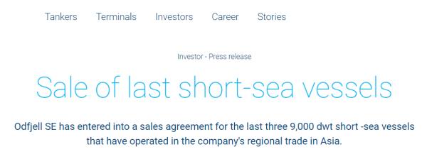 11月2日,Odfjell在其官网宣布,已就该公司在亚洲区域贸易中运营的最后三艘 9,000 载重吨近海船舶签订了销售协议。此外,这一领域最后一艘期租的船舶也将于2022年1月重新交付给船东。