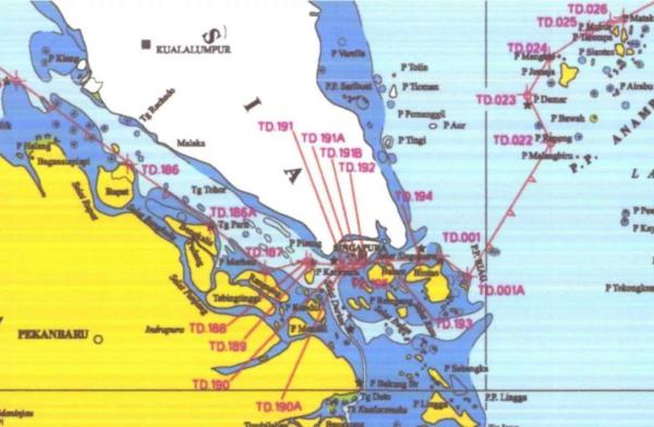 对于印尼及附近国家领海问题,一旦船舶在马六甲海峡(通过巴生港)向南行驶,并且通过新加坡海峡直至进入南中国海为止,马来西亚、新加坡、印度尼西亚的一方将会宣称此为领海水域。在过去,经常误以为该片水域中不会受到上述三个国家的管辖。其实,在这片水域属于印尼领海。