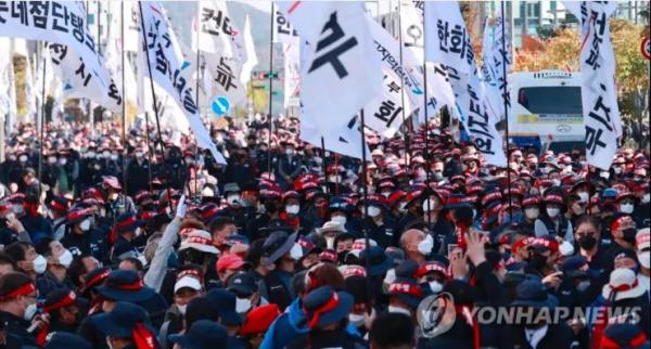 这些卡车司机拥有22,000辆汽车,是韩国工会联合会旗下的货运卡车司机团结会(CTS)的成员。示威活动在韩国主要集装箱港口釜山以及全国各地的集装箱堆场和工业园区举行。另一群人在首尔世宗政府大楼外示威。业内人士担心此次罢工行动可能会加剧困扰集装箱运输的物流瓶颈。