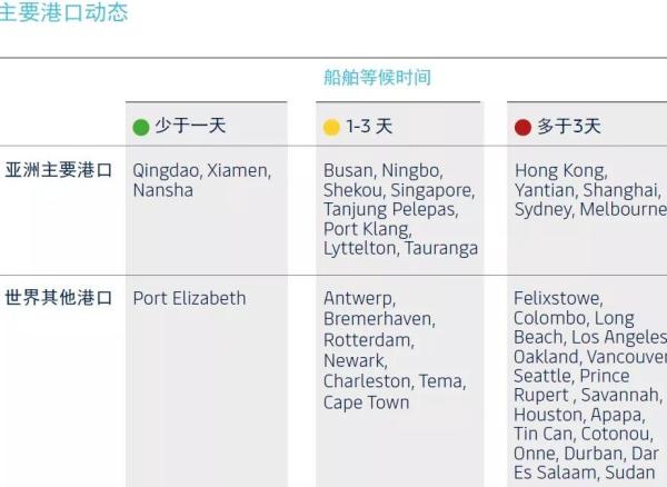 根据马士基最新的亚太区供应链市场趋势报告(2021年11月),全球主要港口动态如下表: