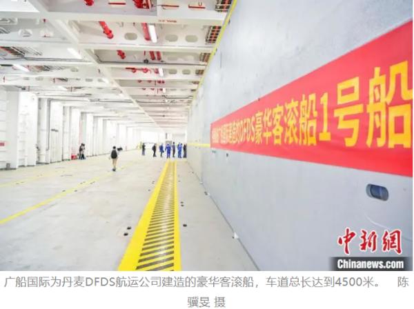 12月14日,由中国船舶集团旗下广船国际为丹麦Det Forenede Dampskibs-Selskab(简称:DFDS)航运公司建造的600客/4500米车道豪华客滚船,在广州市南沙区举行媒体开放日活动,正式对外展示其先进的制造工艺和世界领先的综合性能。