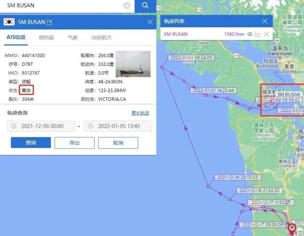 据报道,这艘建造于2007年的集装箱船“SM Busan”(运力6,655 TEU)于2021年12月19日离开美国温哥华哥伦比亚河,并预计12月29日抵达釜山。在太平洋航行途中,船舶速度变慢,该船决定驶往加拿大鲁珀特王子港。“SM Busan”集装箱船正遭受燃料问题的困扰。