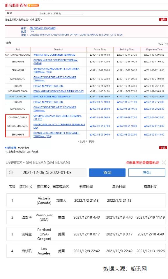 该船服务于SM Line的CPX(CHINA PACIFIC EXPRESS)服务。该船12月13日从洛杉矶港出发,中途停靠波特兰港,按照原定船舶航行计划,该船接下来停靠的港口包括韩国釜山港、光阳港、我国青岛港、宁波港和上海港。