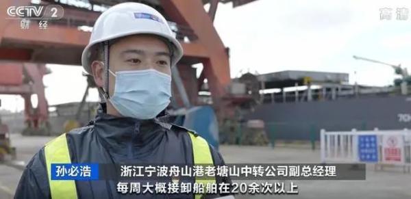 浙江宁波舟山港老塘山中转公司副总经理 孙必浩:旺季的时候,我们港区每周大概接卸船舶20艘次以上,虽然受春节传统淡季影响,每周作业艘次有所下降,大概在十六七艘次,但对比去年同期,增长幅度还是达到了5个百分点。目前掌握的货源情况来看,还有5艘次以上的船舶等待靠泊。