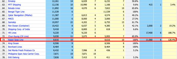 Alphaliner数据显示,亚海航运在全球班轮运营商中排名第73位,经营着10艘租赁船,运力达到8616TEU,此外还有6艘新造船订单,运力达到11060TEU。