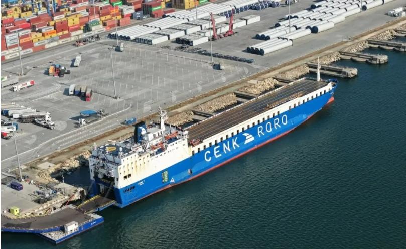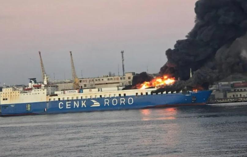 据社交媒体视频验证画面中船舶特征与“Cenk T”轮相符,背景设施也与切尔诺莫斯克港的卫星图像吻合。