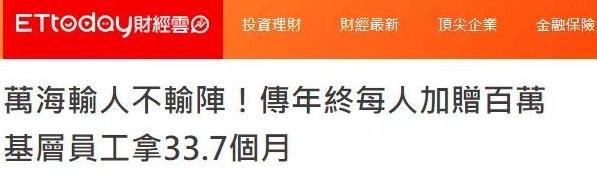 台湾三雄年终奖大比拼!万海:12个月加100万元?