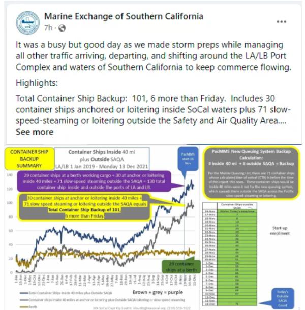 拥堵并未缓解!101艘集装箱船横跨1000英里等待泊位