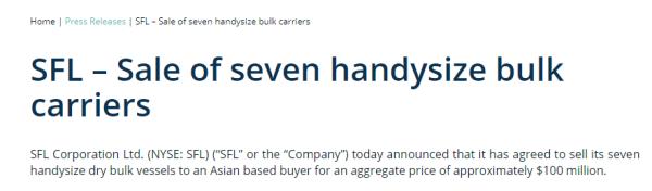 “高抛低吸”,挪威船王1亿美元卖出7艘灵便型艘散货船!