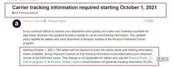 亚马逊FBA新规!10月1日起,自配送卖家需提供承运人物流追踪信息