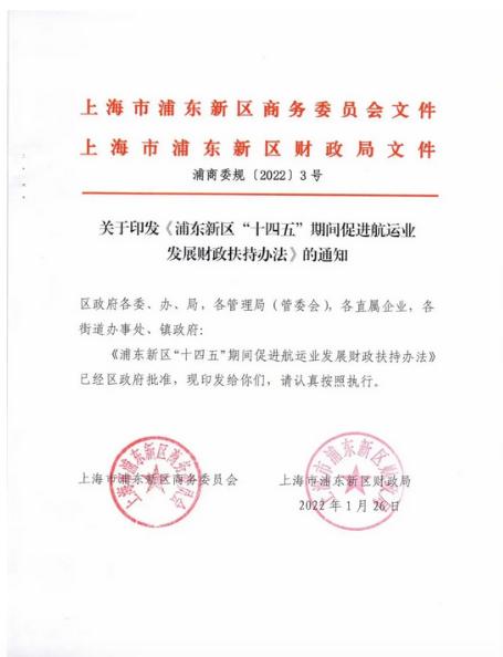 浦东新区正式发布“十四五”期间促进航运业发展财政扶持办法