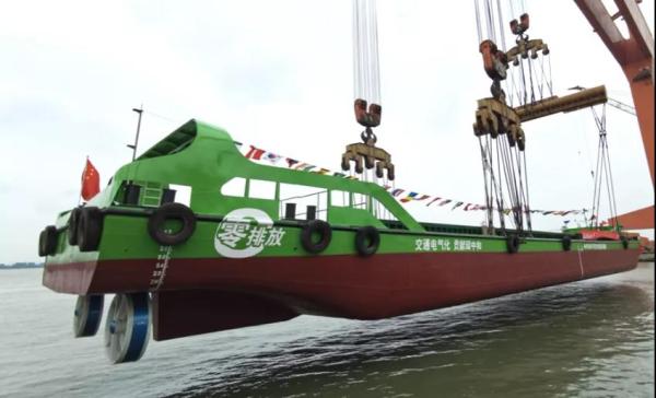 64TEU内河绿色智能集装箱船项目由国网电动汽车服务有限公司投资,严新平院士担任技术首席专家,带领武汉理工大学国家水运安全工程技术研究中心联合船舶设计方、船舶标准制定方、设备研制方和船舶制造方等产业链参与单位紧密合作,共同攻克了多个技术难关,集成了模块化集装箱电池动力组、直流组网、无轴轮缘驱动器、船舶安全辅助驾驶等多项创新技术”,形成20余项知识产权和多项行业标准,显著提升了我国电动船舶研究设计与制造水平。