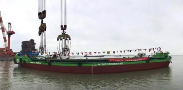 日前,国内首艘64TEU内河绿色智能集装箱船“国创”号在江苏泰州下水。