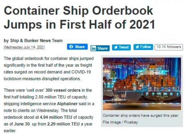 根据Alphaliner的数据,今年上半年各大船公司订购了300多艘集装箱船。而迄今为止,集装箱船订单数量还将以惊人的继续增长。除了中远海运外,据悉马士基、阳明海运和ONE等船公司都将与亚洲船厂进行洽谈。