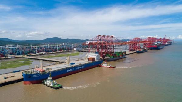 你没看错,散货船也能装载集装箱,这一幕就发生在宁波舟山港梅山港区。7月18日7时45分,由多用途纸浆船改为集装箱船的“中远海运荣耀”轮在完成841标准箱作业后,驶离宁波舟山港梅山港区集装箱码头,完成了“散改集”后在宁波舟山港的首次作业。