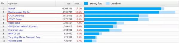 据Alphaliner称,中远海运集运目前的总运力为297万标准箱,而达飞轮船的总运力为301万标准箱。如果后者不采购更多船舶,中远海将超过法国达飞轮船重新成为第三大集装箱航运公司。