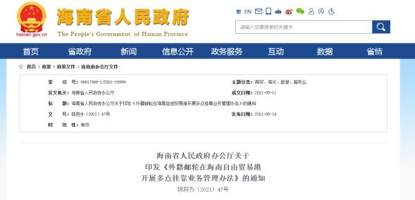 该办法明确,申请经营海南自由贸易港多点挂靠业务,应当由相关经营人向海南省交通运输主管部门提交相关材料,并对其真实性、合法性负责。