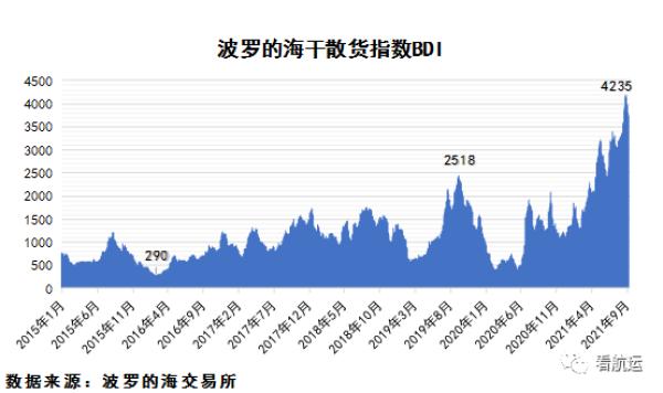 ·2015-2021年波罗的海干散货指数BDI走势图