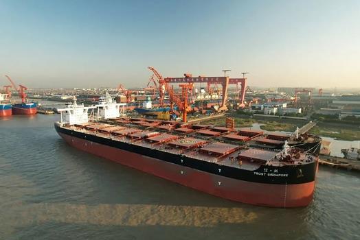 9月23日,由中国船舶集团所属上海外高桥造船有限公司为工银金融租赁有限公司建造,并由中信金属股份有限公司承租运营的21万吨纽卡斯尔型散货船“信·新”(Trust Singapore)轮顺利签字交付。