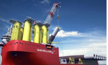 该船专门为新一代大风机时代而设计,能够运输和安装10个1500吨的超大型单桩基础(或者11个2000吨的超大型导管架基础)。船上安装一台3000吨的主起重机,配备DP2动力定位系统、快速压载系统,兼具半潜和重吊能力,为海上风场风机基础的运输和安装提供 “一站式” 服务。