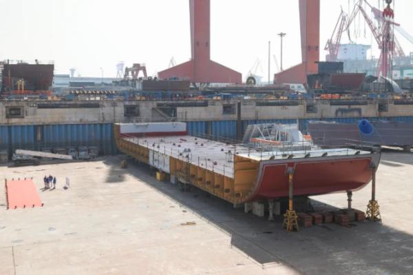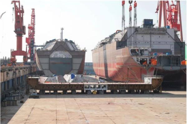 人勤春早,起势提速。2月14日,中国船舶集团旗下沪东中华建造的24000TEU超大型集装箱船7号船在长兴造船2号船坞顺利入坞。这是公司虎年实现的第一个生产大节点,标志着这一全球最大型集装箱船建造进入全面提速新阶段,也吹响了夺取2022年经营生产任务的进军号。