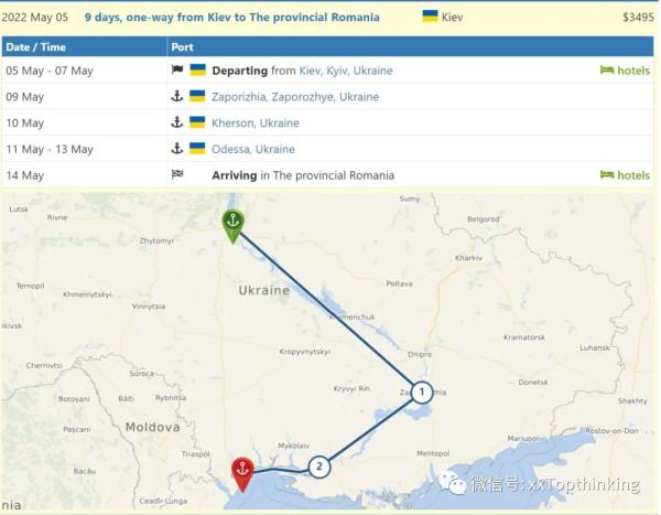 对于乌克兰境内的其他地区,撤侨仍然处于困难当中。目前,在乌克兰的敖德萨港,有一艘名为Viking Sineus的内河游轮,挂乌克兰旗,5400总吨,能搭载196名乘客,本来的航线计划是5月份开始执行基辅、敖德萨以及罗马尼亚港口的航线。不知道未来的战事会不会影响该游轮的航程。