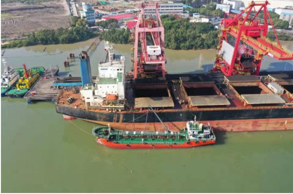 据悉,外轮“MV FLYING LOONG”(飞龙)” 上载有65000吨从印尼进口的煤炭,是广州珠江电力燃料公司为广州珠江电厂的供应的发电用煤。船东HENGDA SHIPPING GROUP LIMITED(恒达船务)表示,“2月28日广州发展碧辟油品有限公司获得首批保税油经营牌照,为煤炭进口船舶的加油模式翻开了新篇章。现在我司在卸货码头直接受油,无须绕道新加坡或到珠江口的外锚地等候加油,对比以往节约了24小时以上,大大减少加油成本,加快了煤炭运输时间,对我们能源运输企业是重大利好,南沙港将是我司加油的首选地。”