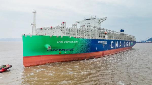 “CMA CGM LOUVRE”轮是一艘23000TEU LNG双燃料动力集装箱船,船长400米,船宽61.3米,配备了由中国自主研发的WinGD双燃料主机,LNG燃料舱达18600立方米,是全球最大箱位LNG双燃料动力集装箱船。