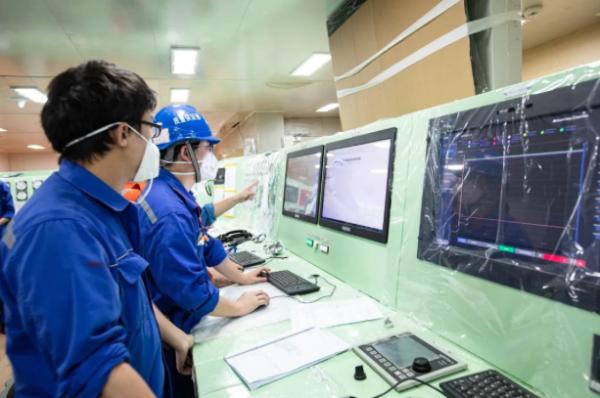 24000TEU箱船首船试航圆满完成的喜悦,已经转化为建造团队持续奋进的动力。当天下午,很多试航员工没有休息,依然坚守岗位,积极投身试航意见消除整改中,为了6月的交船目标撸袖苦干,为了圆梦“世界最大箱船中国造”的光荣使命全力拼搏。