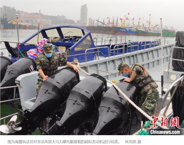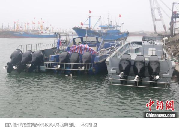 中新网福州6月6日电 (林克凯 吴宗伟)近日,福建福州海警局持续加强海上巡逻管控力度,利用无人机技术成功发现并打掉一个“大飞”集结点,查扣非法改装大马力摩托艇3艘,案值逾400万元人民币。