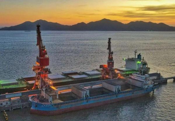 8月10日,江海直达船“江海直达17”轮从宁波舟山港岑港港区老塘山三期码头离泊,装载着11208吨进口大豆由海进江,直奔湖北武汉。