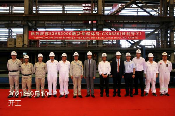 9月6日,中国船舶集团旗下中船澄西船舶修造有限公司为船东通利公司建造的43号82000吨散货船顺利签字交付,较合同期提前45天,标志着公司造船主建船型新8.2万吨散货船建造首战告捷。