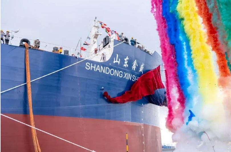 9月27日,由山东海洋集团所属山东海运华宸租赁打造的国内首制应用碳捕集系统散货船“山东鑫盛”轮,在江苏南通景通码头命名交船,标志着华宸租赁12艘8.2万载重吨散货船项目圆满收官。集团公司党委委员、副总经理段银山出席仪式并致辞,省交通运输厅财务处副处长张媛受邀担任教母并为船舶命名砍缆。海洋控股党委副书记、董事、总经理,华宸租赁董事长顾志伟,以及光大金租、韩通集团、中国船级社、上海船舶研究设计院、中船集团第七一一研究所等相关单位领导出席命名交船仪式。